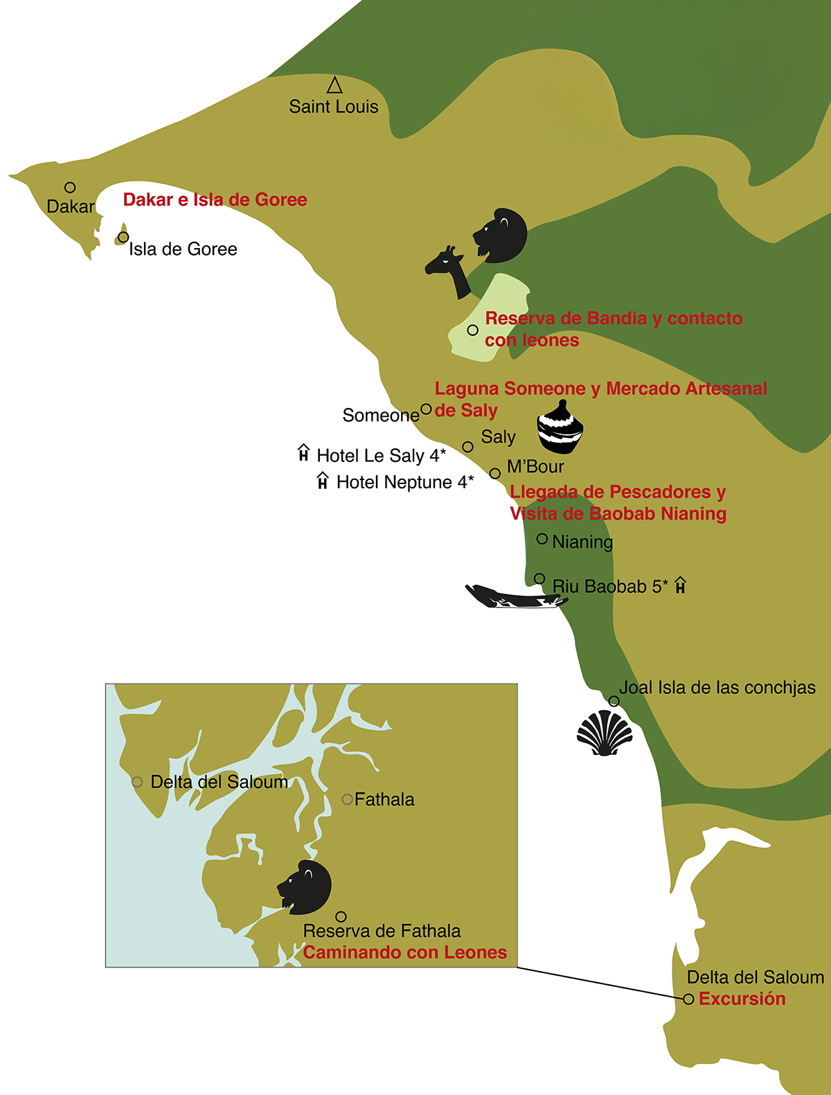 Senegal es un país de historia profunda y tradición ancestral. Aunque gran parte de su pasado se transmite a través de relatos y leyendas, los antiguos reinos y estados que lo formaron, junto a guerras y conquistas, han marcado su identidad cultural. Antigua colonia francesa, alcanzó su independencia en 1960, conservando una fuerte herencia histórica y cultural que sigue viva en la actualidad.